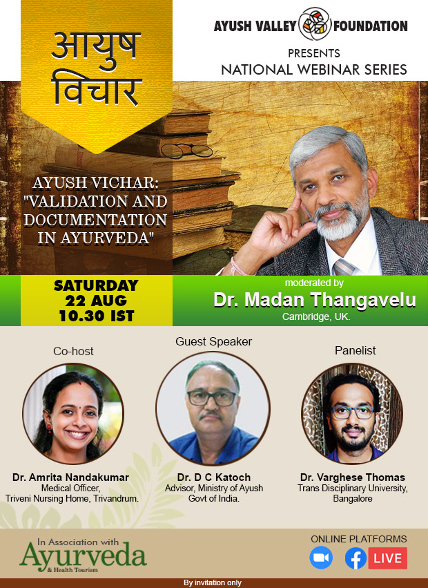 held at 10.30 am on August 22 when the topic ‘Validation and Documentation in Ayurveda’ will be discussed in
